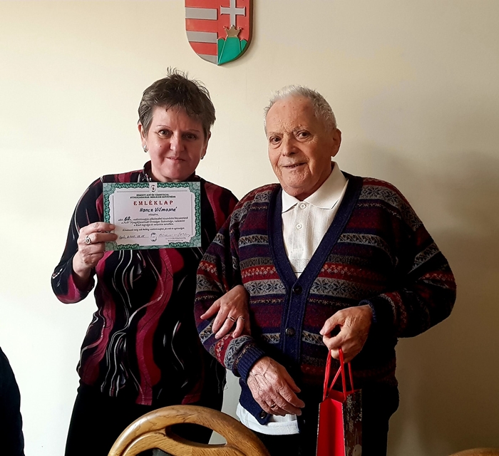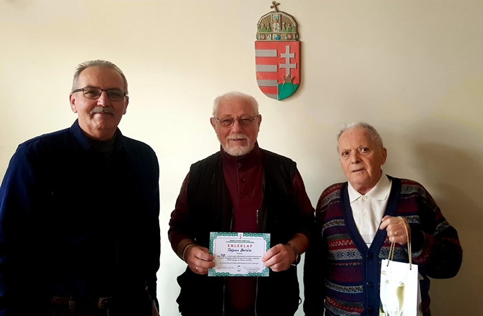 Ünnepélyes keretek között kapta meg a 85. éves emlékplakettet Scheer Istvánné, Ilike. A 70. éves Fódi Antal és Talpas Balázs, a 65. éves Kapor Béla és a 60. éves Hancz Vilmosné vehette át az emléklapot és az emléklapok mellé járó üveg pezsgőt. Aki az eseményen nem tudott megjelenni annak később fogjuk eljuttatni. (fotó felvételek a helyszínen készültek)
