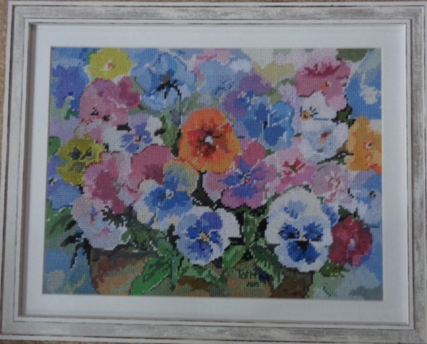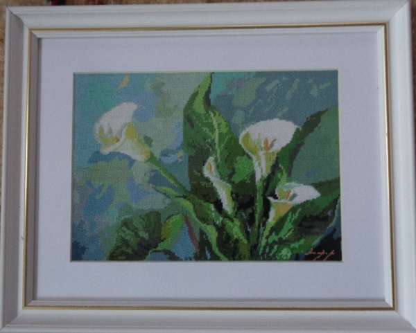 JM: Nagyon sok hobbim van…. Már kb. 20 éve varrok gobelineket. Sokat ajándékba adok szeretteimnek. Már csak festményeket varrok és tűgobelint Van olyan munkám, mint Monet tavirózsái, amit 8 hónapon keresztül napi 8 órában varrtam 128 színnel, mert szeretem a kihívásokat. Most Szamosközi Antal pipacsos képét varrom, hasonló feladat lesz.