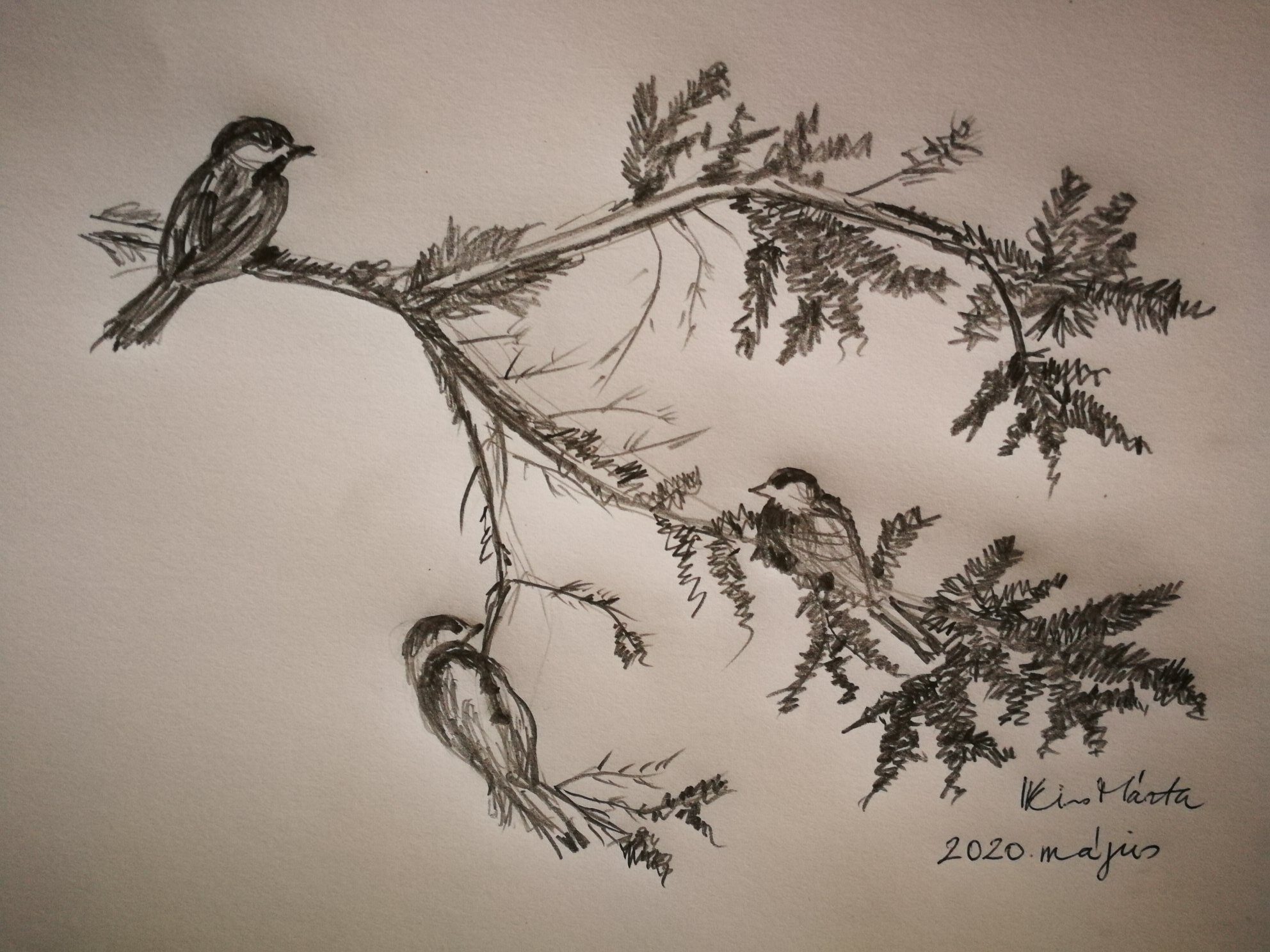 KM: A hobbijaimat az élethelyzeteim alakították, hozták felszínre. Volt idő, amikor évekig örömmel varrtam, kötöttem gyerekruhákat. Mindig szerettem a természetet, éveken keresztül szinte nem múlt el hónap, hogy barátaimmal ne kirándultunk volna. Most, hogy nyugdíjas lettem, több időt tudok szánni a kertgondozásra, és talán hobbinak nevezhetem azt is, hogy valamilyen segítő tevékenységben vegyek részt. A tavaszi karantén időszak “rávett” a rajzolásra. A vágyam valójában az, hogy fessek is, ennek első állomása lett a rajzolás.