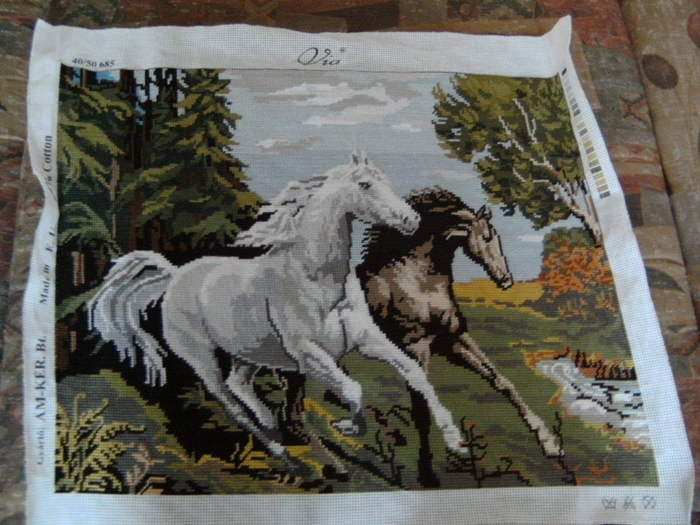 Az egyik fiatal munkatársnőm megmutatta gobelin faliképét, amit ő varrt. Kedvet kaptam hozzá, a varrás technikáját már félig ismertem, mivel keresztszemes kézimunkát is varrtam már.