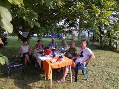 Még-már lehetett összejönni, így vezetői megbeszélést tartottunk a második féléves programról egy diófa hűs árnyékában:
